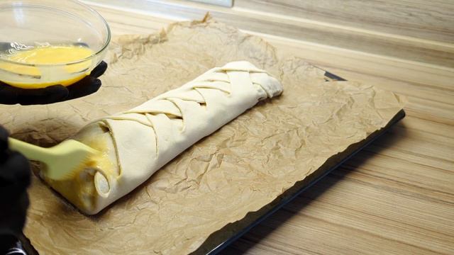 Ингредиенты: Тесто слоёное -1 пласт Шоколад - 2 плитки Банан - 2 штуки Яйцо - 1 штука Грецкий орех по желанию Готовить 30 минут при 180 градусов
