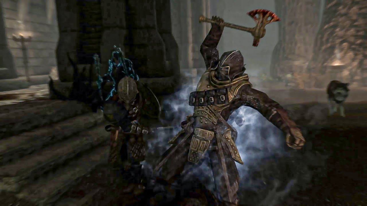 Battle in the Dawnguard Fort with bandits, vampires, monsters and falmers To epic music Skyrim gameplay without interface