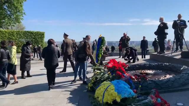 Идут возлагать цветы и много обычных людей