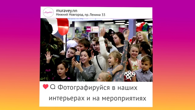Получай деньги за фото в торговом центре «Муравей» Участвуй в конкурсе от торгового центра «Муравей» - получай деньги за фото! 1. Подписывайся на Инстаграм muravey.nn 2. Делай фотографии своих покупок и фотографируйся сам в «Муравье». 3. Выкладывай фотографии в свой инстаграм с хештегом #муравейнн 4. Участвуй в розыгрыше призов каждую неделю! #торговыйцентрмуравей #торговыйцентр #муравей #отзывыпокупателей #тцмуравей #проспектленина #сормово #акция #скидки #праздник #мероприятие #детскийпраздник #конкурс #НижнийНовгород #cказка #длядетей #маскарад #новинки #тренды #бренд #шопинг #бутик #торговоразвлекательный #центр #сладкаявата #пикачу #воздушные #шары #зоопарк