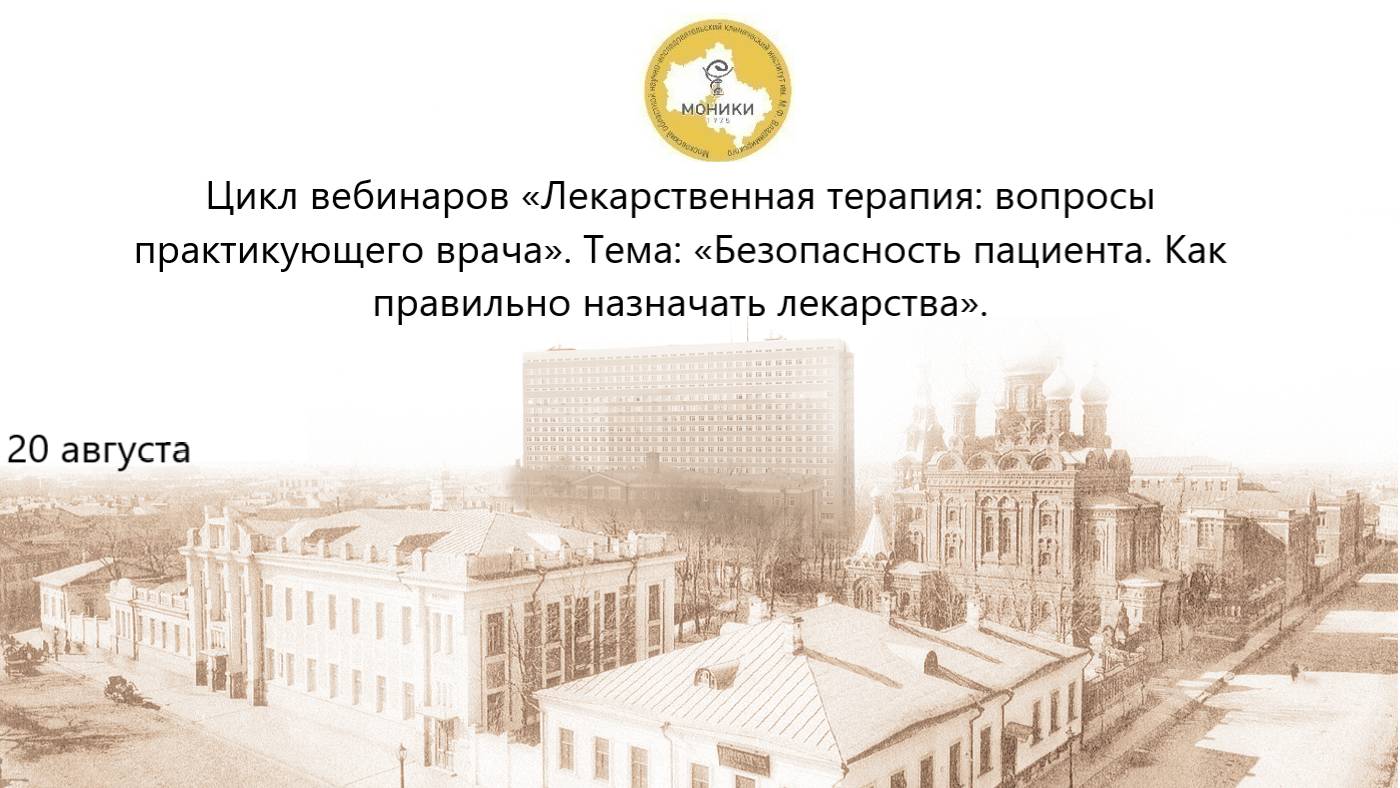 ВЕБИНАР «Безопасность пациента. Как правильно назначать лекарства» в рамках цикла вебинаров «Лекарственная терапия: вопросы практикующего врача» Модератор: Ерофеева Светлана Борисовна, к.м.н., врач клинический фармаколог, профессор кафедры фундаментальной и прикладной медицинской деятельности с курсом клинической фармакологии, руководитель отдела экспериментальных и клинических исследований МОНИКИ Вступительное слово Ерофеева Светлана Борисовна, к.м.н., врач клинический фармаколог, профессор кафедры фундаментальной и прикладной медицинской деятельности с курсом клинической фармакологии, руководитель отдела экспериментальных и клинических исследований МОНИКИ 10:00 «Правила назначения лекарственных препаратов в свете новых нормативно-правовых актов» Обсудим особенности работы в свете нового приказа Минздрава РФ от 07.03.2025 N 100Н с 01.09.2025 Драгунова Наталья Вячеславовна, к.м.н., врач клинический фармаколог, заведующая отделения клинических исследований МОНИКИ 39:00 «Фармаконадзор. Что нового?» Смирнова Елена Петровна, к.м.н., врач клинический фармаколог, заведующая отделения клинических фармакологии МОНИКИ 1:17 «Что нового в правилах назначения наркотических и психотропных средств с 01.09.2025» Ерофеева Светлана Борисовна, к.м.н., врач клинический фармаколог, профессор кафедры фундаментальной и прикладной медицинской деятельности с курсом клинической фармакологии, руководитель отдела экспериментальных и клинических исследований МОНИКИ 1:37 Дискуссия. Ответы на вопросы Подведение итогов. Заключительное слово Ерофеева Светлана Борисовна, к.м.н., врач клинический фармаколог, профессор кафедры фундаментальной и прикладной медицинской деятельности с курсом клинической фармакологии, руководитель отдела экспериментальных и клинических исследований МОНИКИ