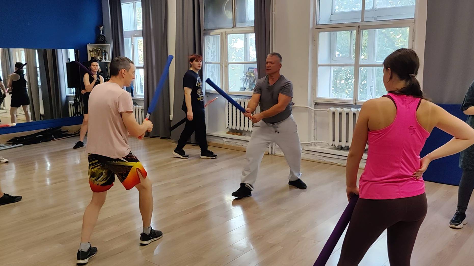 Отработка коротких ударов катаной по рукам мае ути коте в школе японского фехтования Katana Club