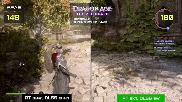 Разница фпс при RT + DLSS выключено и включено на примере Dragon Age: The Veilguard в 1440p (2K)