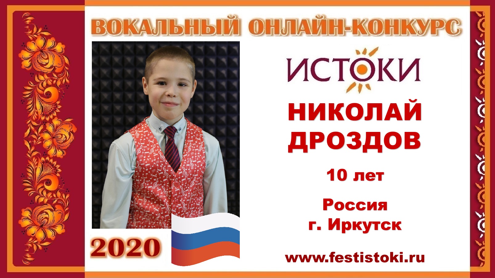 Участник Вокального онлайн-конкурса "Истоки"-2020. Песня "Родные места". Автор: музыка и слова Ю.Антонова. Сайт: www.festistoki.ru / www.festistoki.com E-mail: festistoki@mail.ru