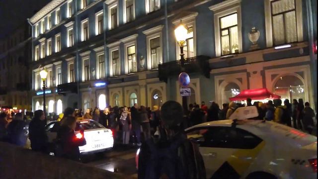 Уличные музыканты громко выступают у станции метро, на канале Грибоедова, 12 октября