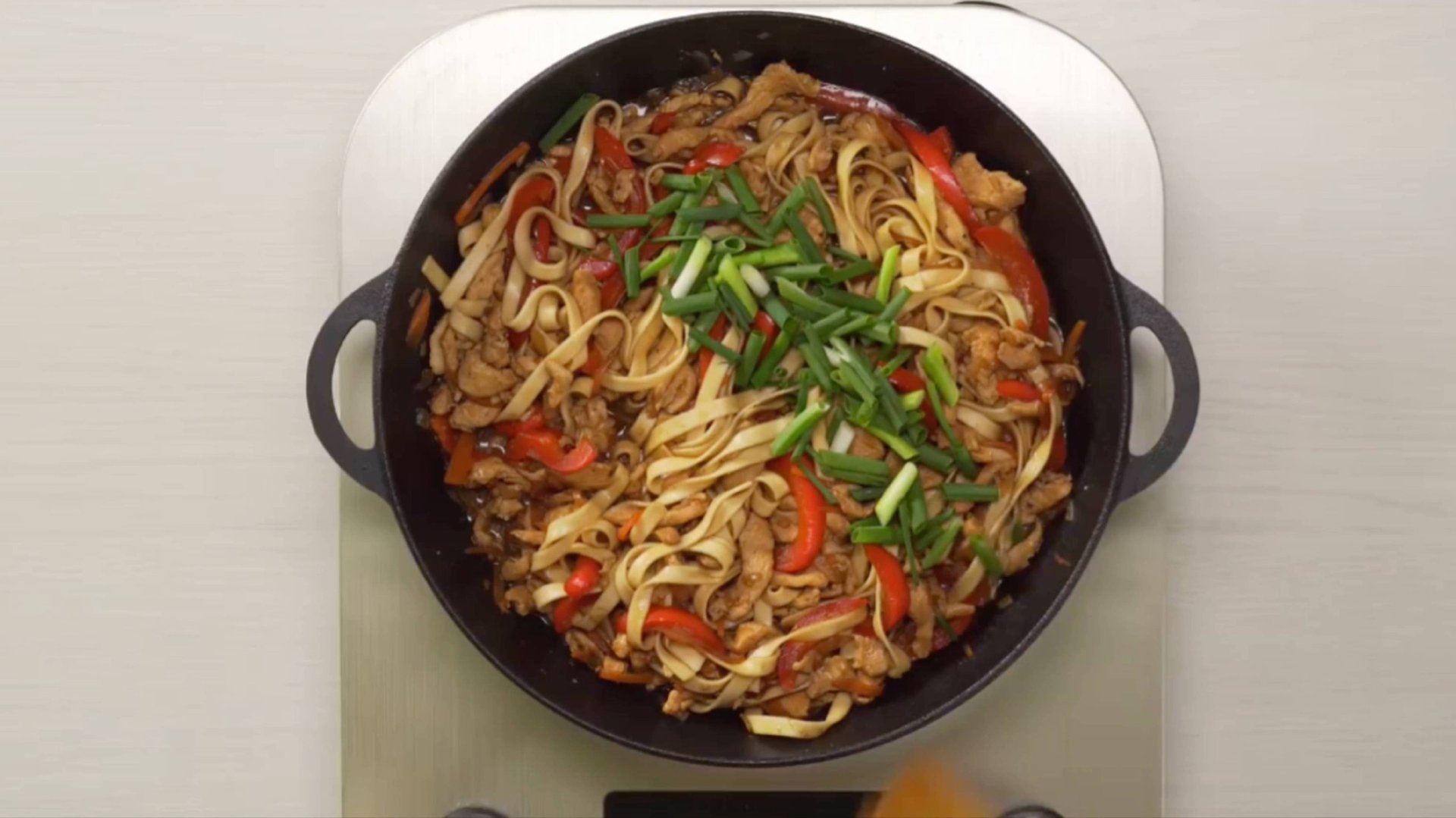 Ингредиенты Куриная грудка - 400 г Лапша удон - 200 г Перец сладкий - 120 г Морковь - 70 г Лук репчатый - 70 г Чеснок - 10 г Имбирь - 20 г Перец острый чили по вкусу Зеленый лук - 15 г Масло растительное - 3 ст.л. Соевый соус - 50 г Соус Терияки - 120 г Соль по вкусу Перец черный молотый - 1 ч.л.