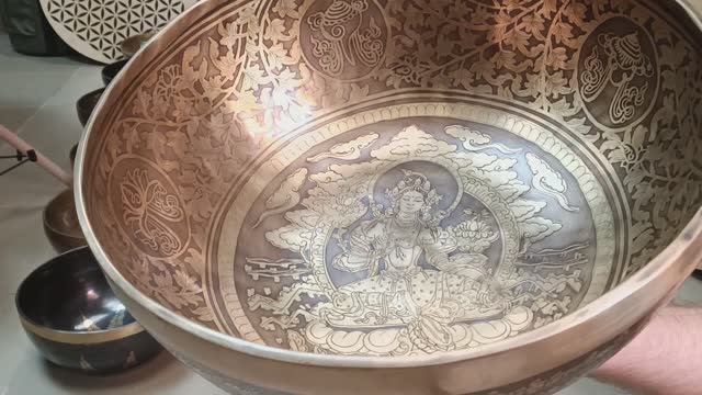 Сайт: https://shamanic.moscow Купить: https://shamanic.moscow/muzykalnye-instrumenty/poyushchie-chashi/1-4-1-1-2-3-1-1-1-1-1-1-1-2-3/ Адрес: Москва, улица 1 Владимирская д. 25 корп. 1 Цокольный этаж, магазин Shamanic (вход с торца здания) Гонги: https://shamanic.moscow/muzykalnye-instrumenty/gongs/ Поющие чаши: https://shamanic.moscow/muzykalnye-instrumenty/poyushchie-chashi/ Бубны: https://shamanic.moscow/muzykalnye-instrumenty/bubny/ Телеграмм канал: https://t.me/Shamanic_Moscow Кованая поющая чаша "LUMBINI" Premium (singing bowl). Уникальная технология и особый сплав металлов даёт великолепное звучание. Особенности: мощный терапевтический эффект, богатое звучание, великолепная вибрация. Класс чаши: professional (для всех видов практик: индивидуальная практика, групповая практика, целительство, медитации, массаж, самомассаж) Материал: особый сплав из 7-ми металлов Тип чаши: кованая Размер: 27 см Нота: Ля Частота: 110 Гц Изображение: Зелёная Тара Изготовлено в Непале (Катманду) Купить поющую чашу - это просто!