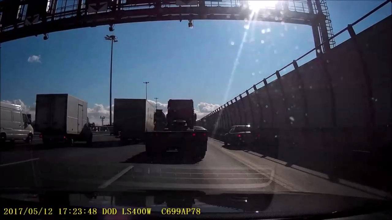 Водитель на фуре умышленно зацепил подрезавшую легковушку. #трасса #авария #фура