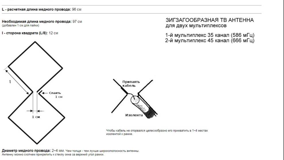 Зигзагообразная ТВ антенна (Харченко) для двух мультиплексов своими руками с помощью подручных средств