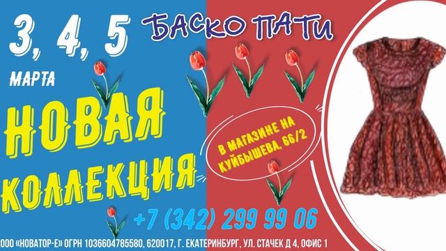 3, 4, 5 МАРТА НОВОЕ ПОСТУПЛЕНИЕ! В г. Пермь, Куйбышева, 66/2. С 1 марта магазин на Куйбышева, 66/2 работает с пн. по сб. с 9:00 до 22:00, в вс. с 10:00 до 21:00. #ВеснаБаскоПати #НОВОЕПОСТУПЛЕНИЕ_БАСКОПАТИ Приятных и ярких покупок!