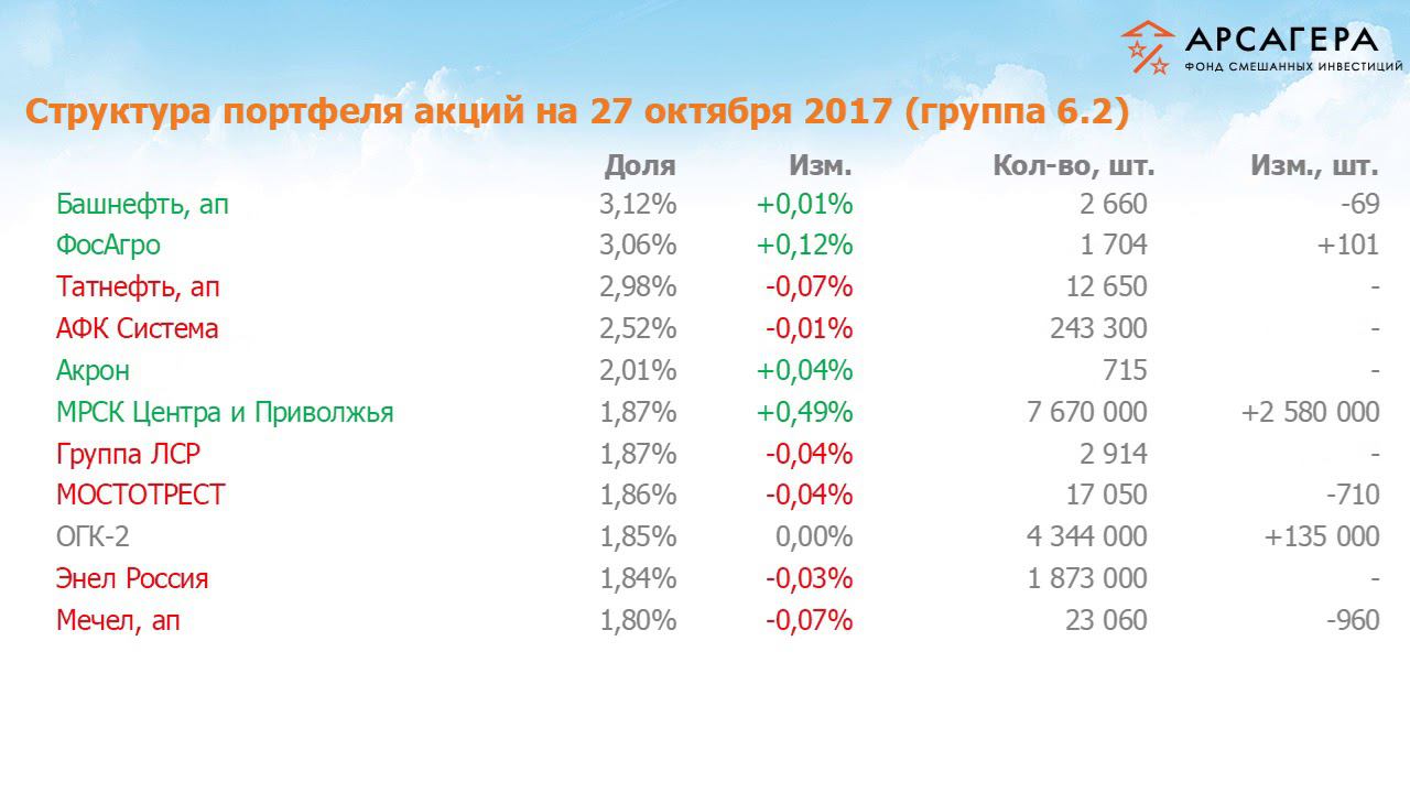 Наши фонды. Арсагера - фонд смешанных инвестиций. #192 с 13.10.17 по 27.10.17
