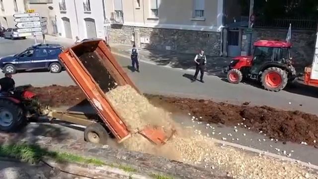 Французские фермеры бастуют против нехватки воды! вываливая навоз и камни возле Ле Вигана