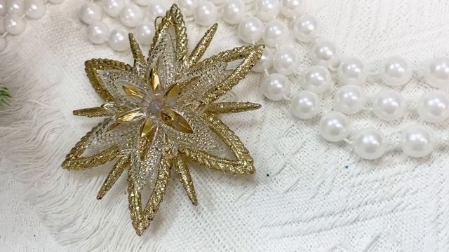 Снежинка БРОШКА, акрил, прозрачная с золотом, 12 см, 200175