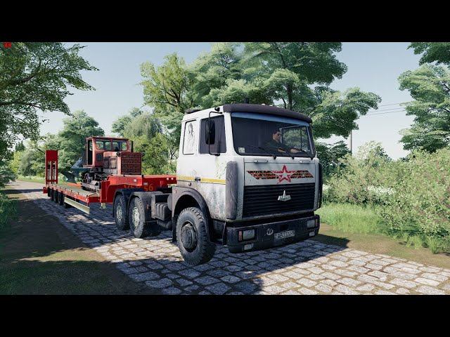 Карта КОШМАК Трактор Т-4А пашем в деревне огороды. Перевозка трактора на тралле
