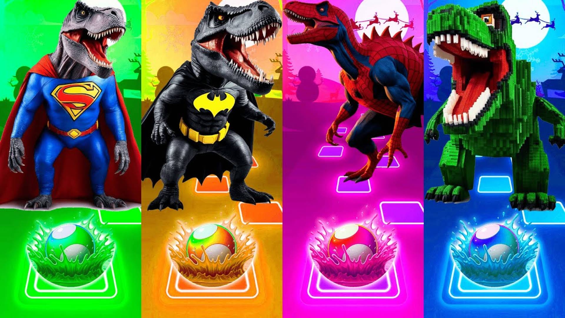 Т-РЕКС СУПЕРМЕН VS Т-РЕКС БЕТМЕН VS Т-РЕКС ЧЕЛОВЕК ПАУК VS ЛЕГО ДИНОЗАВР | Tiles Hop
