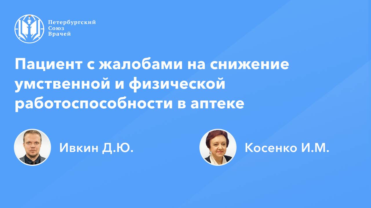Пациент с жалобами на снижение умственной и физической работоспособности в аптеке Дата проведения: 11.04.2025, 20:00 Страница мероприятия: https://spb.doctor/i/250411/ Программа: 1. Пациент с жалобами на снижение умственной и физической работоспособности в аптеке. Ивкин Дмитрий Юрьевич 2. Могут ли витаминно-минеральные комплексы "включить" энергию? Косенко Ирина Максимовна 3. Ответы на вопросы О семинаре: В онлайн-семинаре будут представлены алгоритмы фармацевтического консультирования посетителей аптек при жалобах на снижение умственной и физической работоспособности, будут рассмотрены ключевые фармакокинетические и фармакодинамические особенности препаратов для улучшения памяти и работы мозга, повышения работоспособности. Будут рассмотрены ключевые фармакокинетические и фармакодинамические особенности препаратов данной группы.