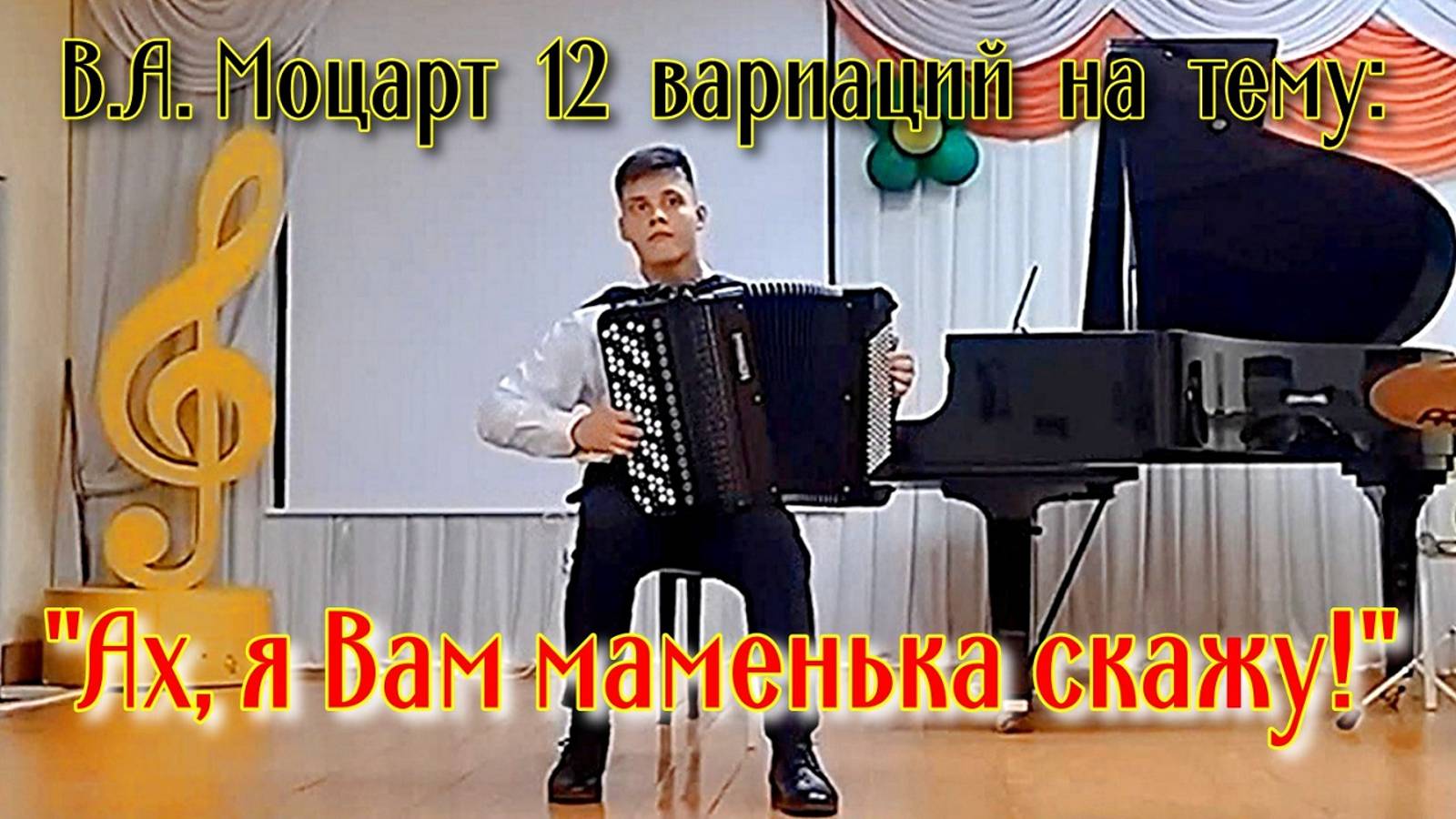 В.А. Моцарт 12 вариаций на тему "Ах, я Вам маменька скажу" баянист Иван Шмаков. Ваня лауреат многих престижных международных, всероссийских и региональных конкурсов. Он учится в Новосибирской специальной музыкальной школе-колледже, класс доцента НГК Рубина Артёма Владимировича