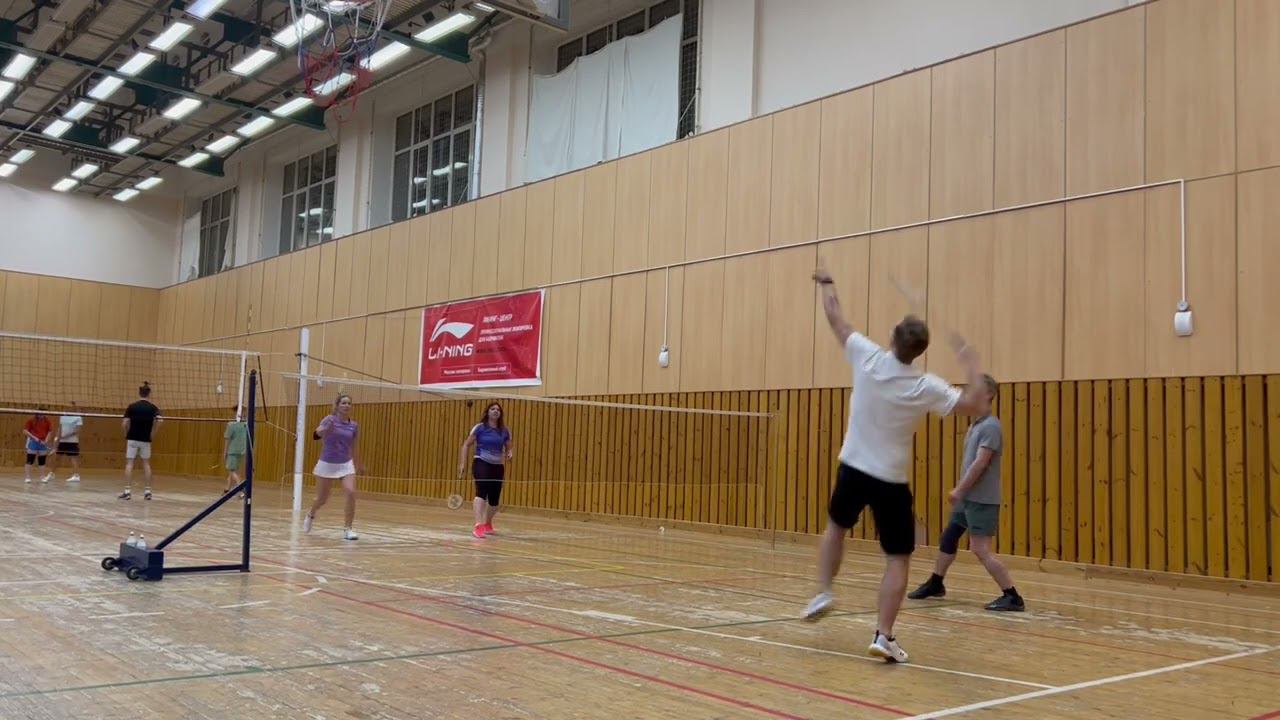 Тренировочная игра в бадминтон через сетку. Играют любители, новички и опытные бадминтонисты. Игра в Лестехе (МГУЛ ранее, сейчас называется филиалом Бауманки). Хочешь тоже играть? Приходи - https://badminton77.ru/map/4/ #badminton #badmintonlovers #badmintonrussia #lesteh #ЛесТех #бадминтон