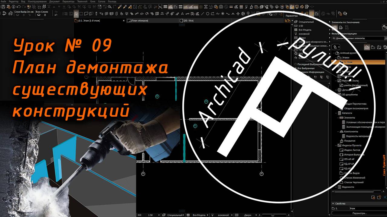 Archicad. Урок № 09 План демонтажа существующих конструкций