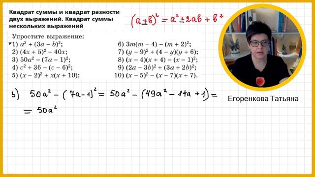 Квадрат суммы и квадрат разности двух выражений Упростите выражение 7 класс