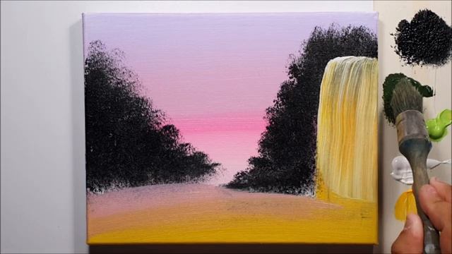 ЗОЛОТОЙ ВОДОПАД- Рисование акриловыми красками! Шаг за шагом! Для детей и родителей!