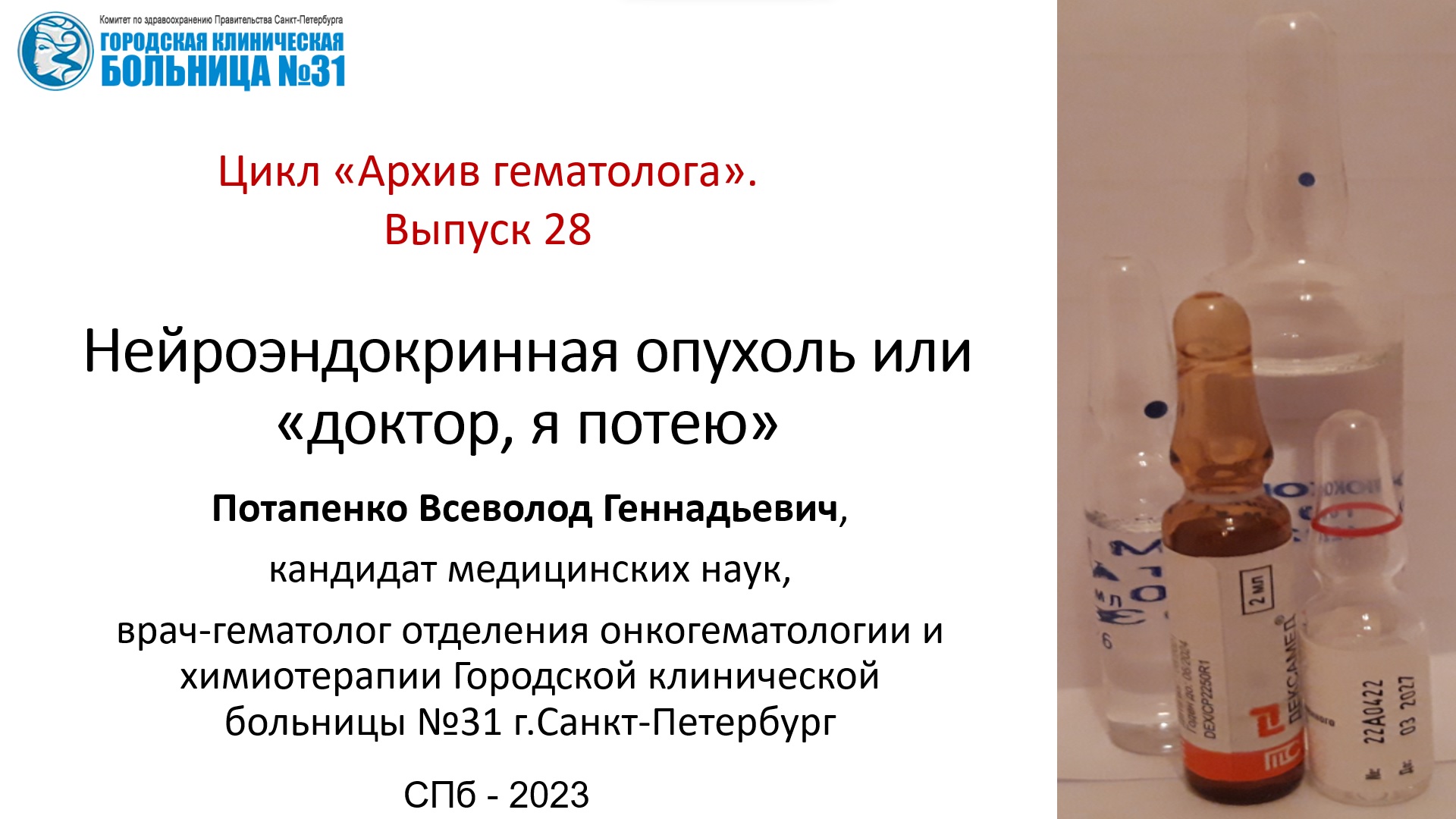 Архив гематолога. Выпуск 28. Нейроэндокринная опухоль или "Доктор, я потею"