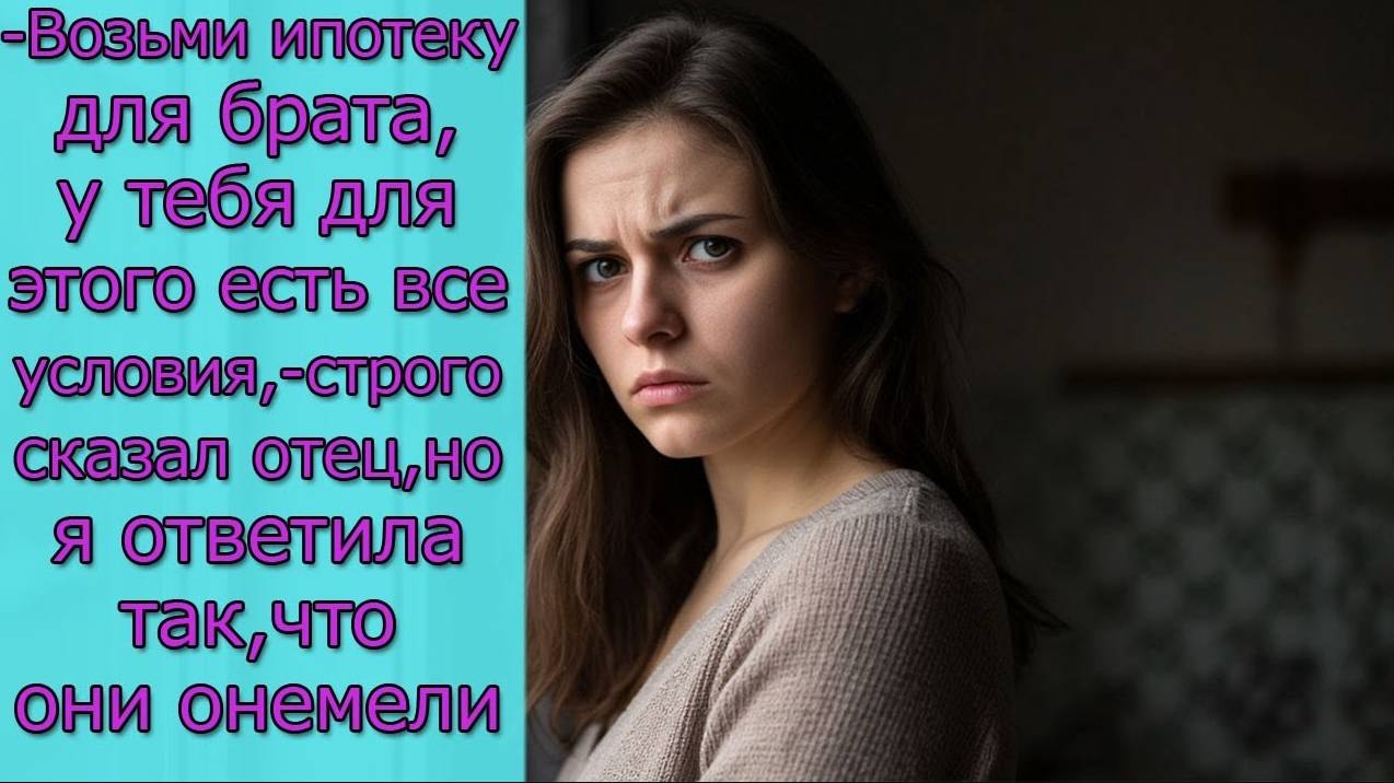 - Возьми ипотеку для брата,- строго сказал отец, но я ответила так, что они онемели