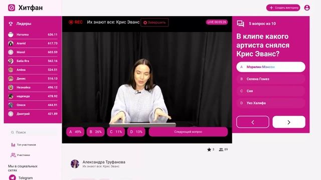 Викторина платформы интерактивных викторин ХитФан с ведущей RuTV Александрой Труфановой от 14 ноября