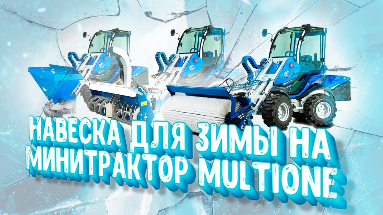 Навеска для зимы на минитрактор MultiOne - щетка, пескосолеразбрасыватель, шнекоротор. Метатекс