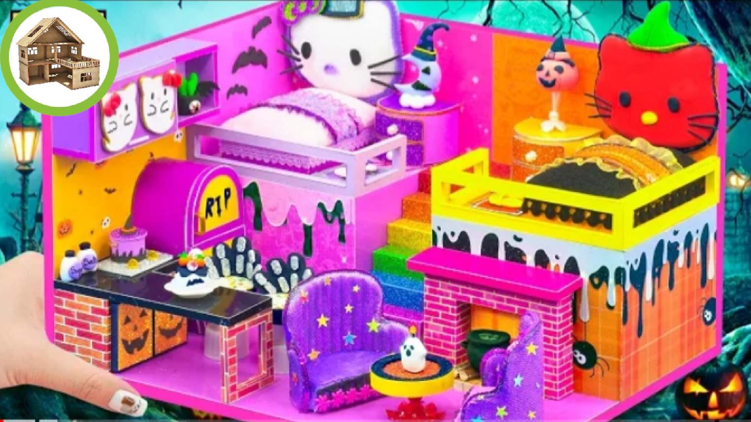 Миниатюрный домик hello kitty на Хэллоуин с 2 костюмированными комнатами для семьи из картона /177
