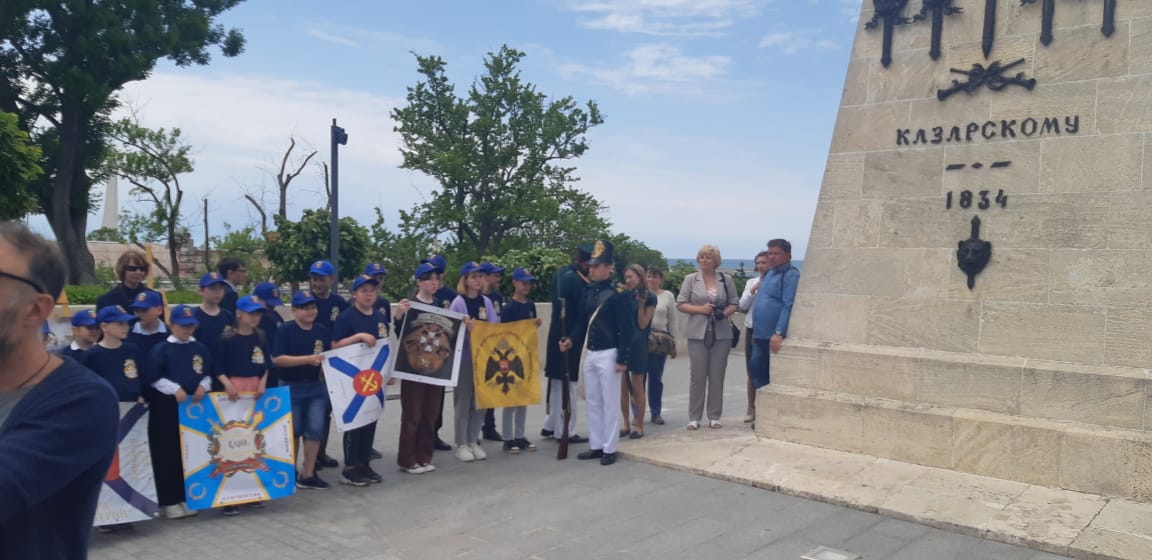 Севастопольский Дом офицеров Черноморского флота участвовал в торжественной церемонии подъема Георгиевского военно-морского флага в честь победы брига «Меркурий» в бою с двумя турецкими линейными кораблями 26 мая 1829 года. Венки несут к памятнику в честь капитан-лейтенанта Александра Ивановича Казарского, командира легендарного брига «Меркурий». 26 мая в Севастополе стало официальной памятной датой. В этот день 193 года назад экипаж корабля совершил подвиг поразивший весь мир.