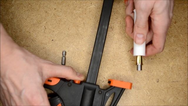 Собираю отвертку из куска полипропилена, части анкера, части гибкого держателя бит и заглушки на 1/2 дюйма