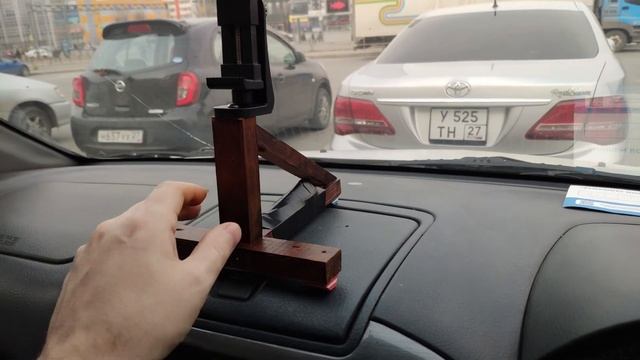 Сделал штативчик для установки смартфона на приборной панели. Обзор видеокамеры хороший, но есть проблемы с устойчивостью.