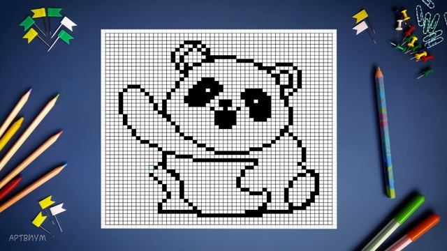 Рисунок панды по клеточкам | Как нарисовать пандочку по клеткам | Panda pixel art