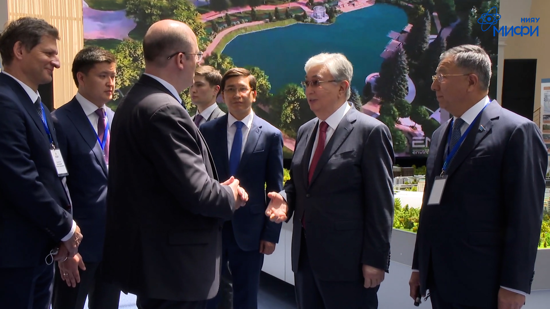 1 июня в честь открытия филиала НИЯУ МИФИ площадку Казахского национального университета им. аль-Фараби (КазНУ) – партнера российского университета – посетил Президент Республики Казахстан Касым-Жомарт Токаев. Ректор НИЯУ МИФИ Владимир Шевченко рассказал Президенту об ускоренных темпах открытия филиала и всесторонней поддержке проекта со стороны КазНУ. В ответ глава Казахстана поблагодарил Владимира Шевченко за проделанную работу, отметив, «МИФИ – это широко известный вуз с хорошей мировой репутацией». Видео пресс-службы Президента Республики Казахстан