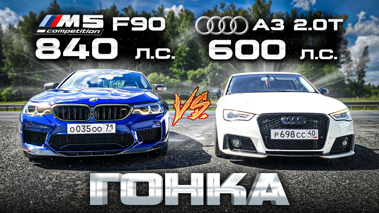 Самая БЫСТРАЯ в России AUDI A3 2.0T STAGE 4 (600л.с.) vs BMW M5 F90 STAGE 2 (840л.с.) ГОНКА.