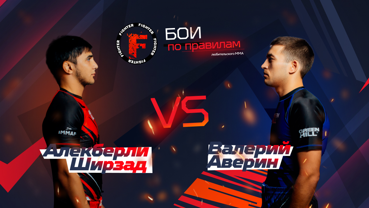 Организация Файтер представляет: бои ПО ПРАВИЛАМ любительского ММА. Бой в весовой категории до 70 килограммов. В синем углу октагона Валерий Аверин. Бойцу 27 лет, его рост 171 см. В красном углу - Алекберли Рояль Ширзад оглы. Спортсмену 28 лет, рост 170 см. Рефери Саламат Исбулаев.