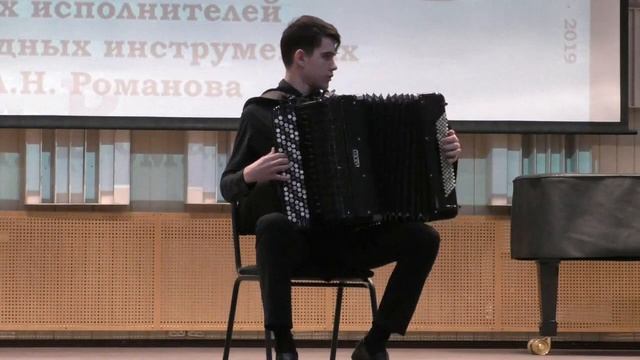 ГЛУШКОВ Александр 16 лет (баян) Новосибирск Конкурс им.А.Н.Романова-2019 IIтур В. Золотарёв "Рондо-каприччиозо" (исп.ред. С. Шмелькова) Александр учится в Новосибирской специальной музыкальной школе (колледже) для одарённых детей при Новосибирской государственной консерватории имени М.И.Глинки. Преподаватель Артём Рубин