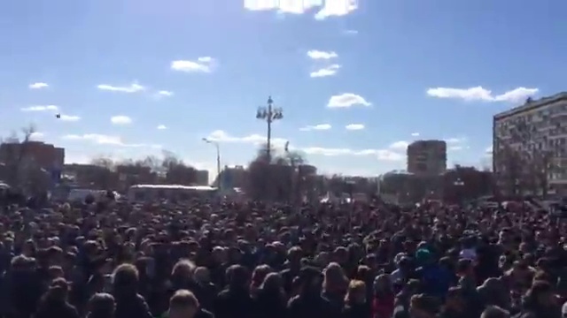 Толпа возмущается задержаниями в ходе акции Навального и ФБК 26 марта, Москва, П