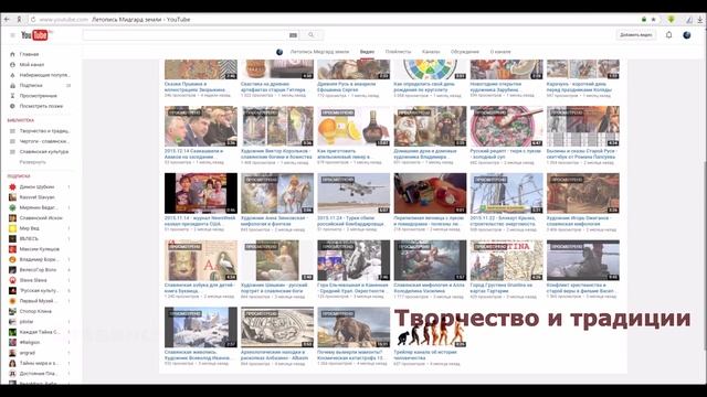 Плейлисты канала: - Творчество и традиции - Родовые поместья - Славянская культура - Родные просторы - История Мидгард -Земли - Пища богов - Тартария