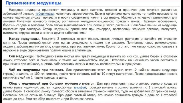 Медуница лекарственная (Pulmonaria officinalis) - хорошо известное многолетнее травянистое растение из семейства бурачниковых. По словам Г. В. Стеллера, «..Вотяки (удмурты) в апреле и мае отваривают медуницу (Pulmonaria) и затем пьют отвар вместе с травой. Траву называют «Zusni pisni» КиберЛенинка: https://cyberleninka.ru/article/n/traktat-o-narodnoy-meditsine Медуница полезные свойства и применение лесные цветы полевые цветы тайга лес сибирь поход т Подробно смотрите этот полный Поход в лес с полями лесных лекарственных цветов по ссылке https://youtu.be/jVy7gak6yTM Встретили в лесу прекрасные и огромные поля лесных цветов кукушкины слезки по другому его называют сибирский ирис смотрите по ссылке https://youtu.be/JSUh5drtTME - этот цветок помогает от ангины и укрепляет иммунитет, как им лечатся на видео по ссылке https://youtu.be/BAqjwHvlmx8 также встретили очень редкий лесной цветок сибирская орхидея смотрите по ссылке https://youtu.be/FwHeoeVmbIw и огромный куст цветов незабудки смотрите по ссылке https://youtu.be/eQ38LWveGtU Встретили цветок купены смотрите по ссылке https://youtu.be/bPyeS_isR-s Встретили желтую лилию смотрите по ссылке https://youtu.be/qsnarv6z62c Встретили место где медведь ловил мышей смотрите по ссылке https://youtu.be/GwIPfcKO0os Встретили кукующую птицу кукушку сняли на видео крупным планом смотрите по ссылке https://youtu.be/u0MQHfOGowI Встретили цветок пустырник он очень лекарственный помогает от неврозов и огромная польза для сердца и сосудистой системы смотрите по ссылке https://youtu.be/l9BqV7ZT6rA Встретили отцветший подснежник или сон траву её надо класть под подушку для хороших снов смотрите по ссылке https://youtu.be/ePWqYKAQ5Sk Встретили лесной цветок медуницу он очень полезна для лечения заболеваний легких и туберкулеза, маточного кровотечения смотрите по ссылке https://youtu.be/FTgNqT0q-UQ Ветер завалил могучую березу смотрите по ссылке https://youtu.be/0XQNH49qBhI Собрали папоротника орляка для жарки и соления дома смотрите по ссылке https://youtu.be/bR0k3Fl5WkI Пробрались по высоким болотным кочкам смотрите на видео по ссылке https://youtu.be/jvlq5-nWysk Встретили огромный сувель на дереве лиственница смотрите по ссылке https://youtu.be/SVxbP8WvSX4 Набрали медвежьего лука черемши колбы смотрите по ссылке https://youtu.be/9HSMNIMh3N4 Встретили куст таежной черной смородины из её листьев получается ароматный чай. Как заваривать смотрите на видео по ссылке https://youtu.be/sKB54r3eARc?t=3h21m53s Лесная черная смородина даст в этом году отличный урожай ягод смотрите по ссылке https://youtu.be/jVy7gak6yTM?t=17m16s Встретили красивые ели смотрите по ссылке https://youtu.be/jVy7gak6yTM?t=22m34s Встретили папоротник страусник его высаживают в декоративных целях на дачах, в цветниках, в садах, огородах, также этот папоротник жарят. Смотрите по ссылке https://youtu.be/nqBkkarIjIs Встретили большие поля лесных цветов жарки по другому их называют цветы огоньки смотрите по ссылке https://youtu.be/DlZ3l3Zg18E . Встретили папоротник орляк набрали на жарку видео по жарке папоротника орляка можете посмотреть по ссылке https://www.youtube.com/watch?v=dYEriSHIMUQ Встретили сувель на лиственнице. Встретили кукушку и крупно её засняли на видео https://youtu.be/u0MQHfOGowI . Покушали сибирский борщевик по другому называют пучка если заблудились в тайге то для выживания в тайге пучка для еды очень подходит и жажду утолит и голод, также сибирский борщевик очень любит кушать медведь смотрите по ссылке https://youtu.be/ab948U7SvM0 Встретили каповую березу кап на ней был огромный березовый сувель, из капов и сувелей делают ручки для ножей ведь у капов и сувелей древесина в два раза