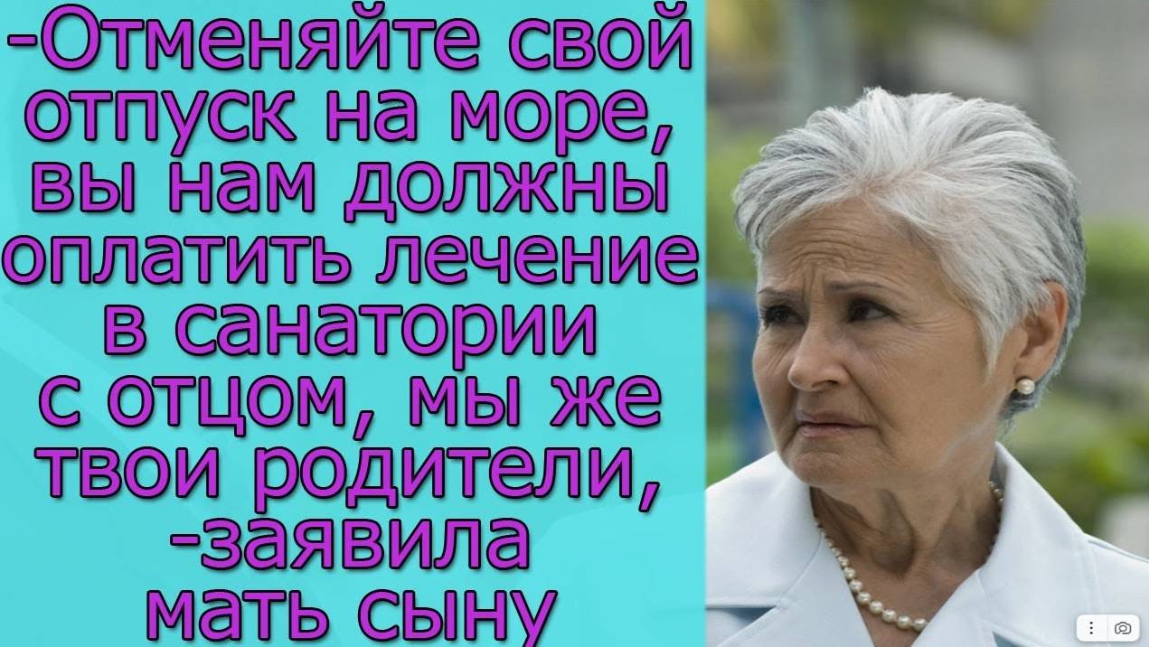 Отменяйте свой отпуск на море, вы нам должны оплатить лечение в санатории с отцом, заявила мать сыну