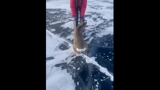 Спасли косулю, которая выбежала на лёд