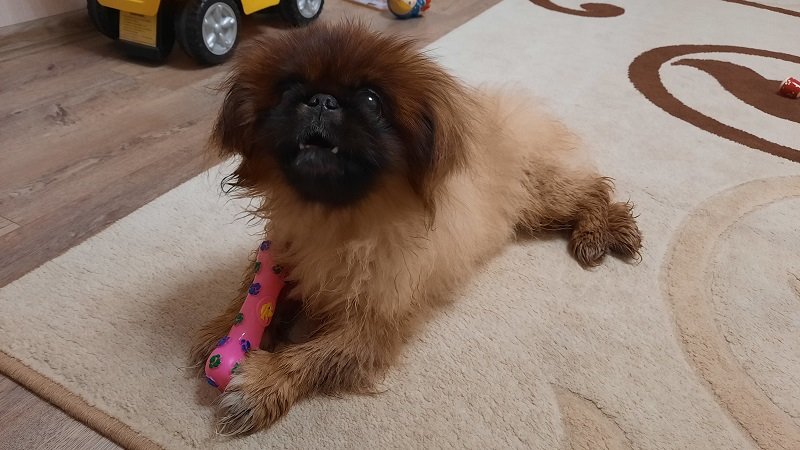 Сходили семьёй в магазин. Ваня сразу присмотрел игрушку для пекинеса Дендика. Вот и купили. Всем хорошо. Собака с игрушкой и Ваня рад, что сам выбрал подарок для Дендика.