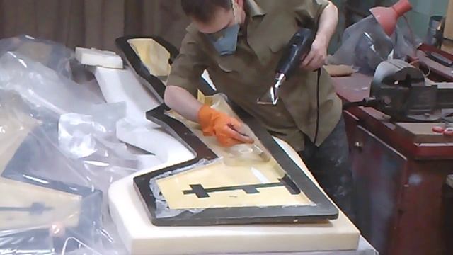 №25 - Закладка внутреннего слоя стеклоткани и угольных усилений на 2 половине фюза