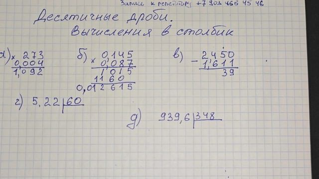 Пять решений с комментариями без ГДЗ. Десятичные дроби, в столбик