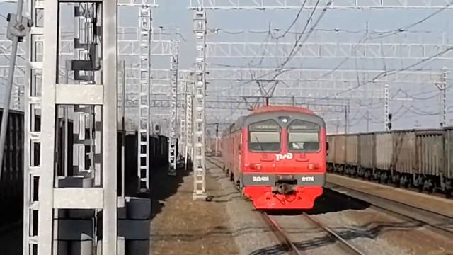 Электропоезд ЭД4М-0174 с пригородным поездом №6212 Челябинск-Шумиха отправляется со ст. Чурилово