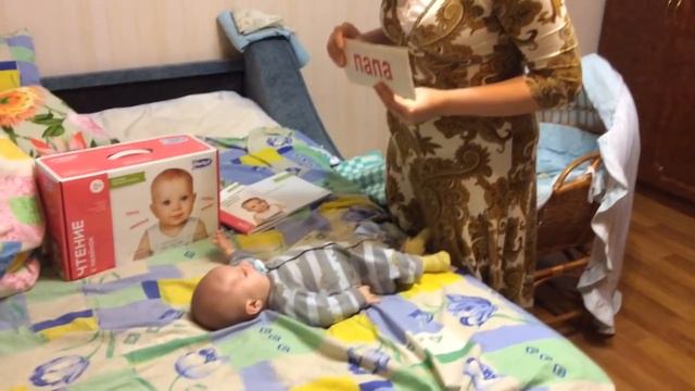 Первое занятие по комплекту "Чтение с пелёнок" с умничкой Марком (3 месяца)