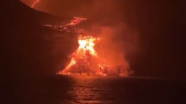 Апокалипсис на острове La Palma. Лава из вулкана на острове Пальма дотекла до океана. Эксперты отмечали, что при попадании в океаническую воду лава начнет испаряться и выделять опасные вещества - серу, хлор и фтор. "Это сильное воздействие, причем это воздействие будет продолжаться очень долго. Именно это испарение будет дольше и опаснее, чем само извержение, потому что оно может накрыть всю Европу этим газом, фтором, серой", — предупредил вулканолог. #вулкан #апокалипсис #европа