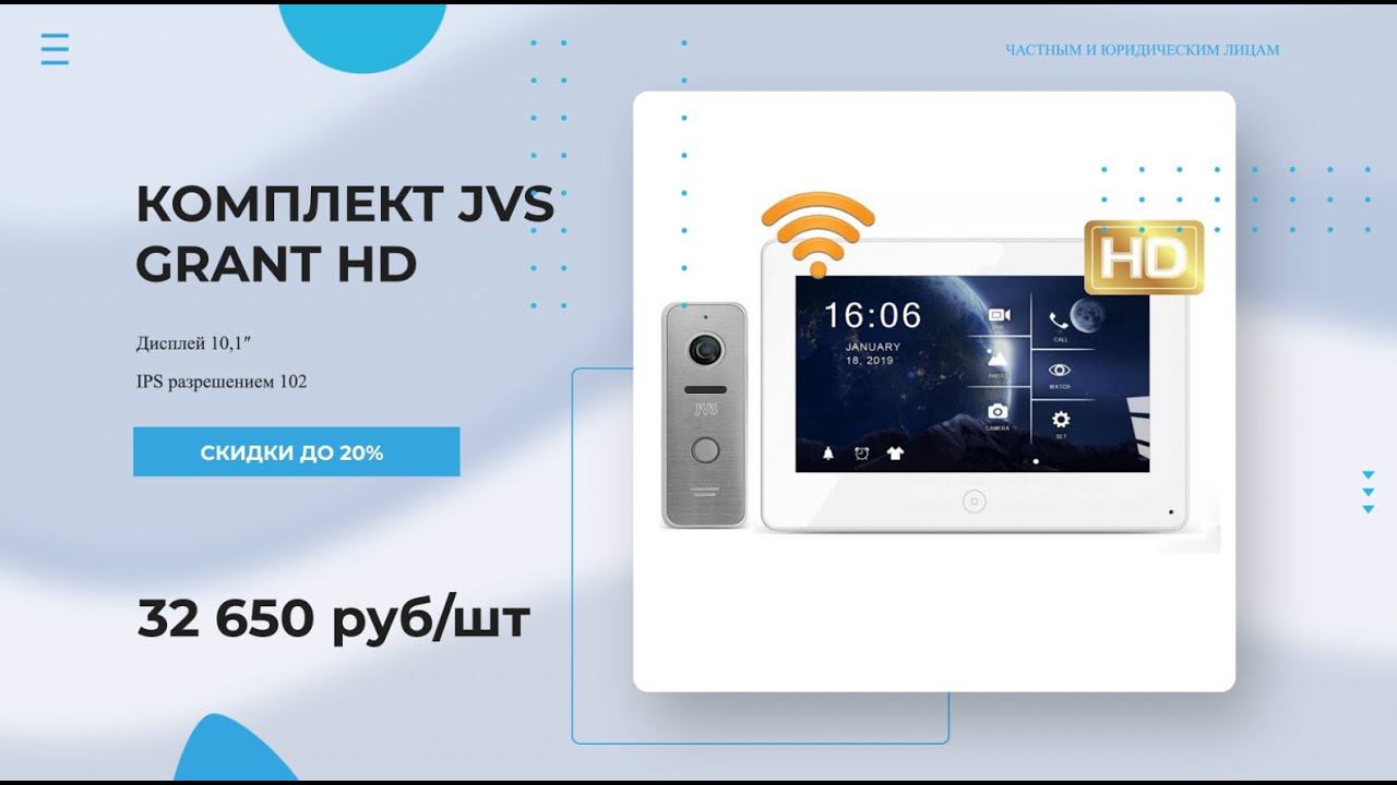 Комплект JVS GRANT HD Wi-Fi видеодомофона Покупай у ЛИДЕРА рынка!